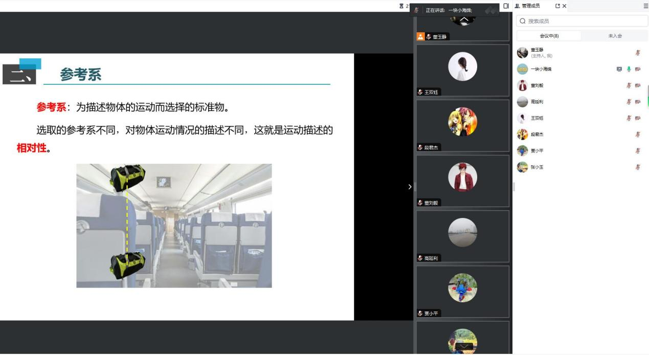 为有效促进新入职教师教学能力的提高,物理教研室于2024年8月25日利用腾讯会议开展线上新进青年教师试讲会议。本次会议由教研室主任董玉静主持,全体教师参加。