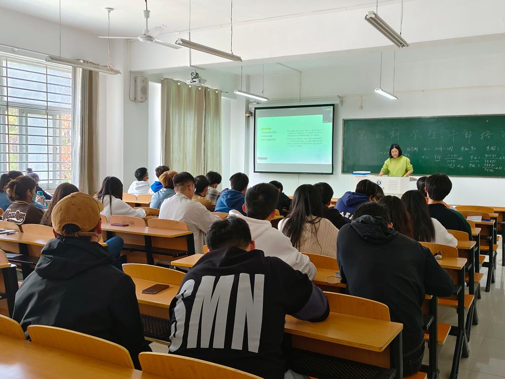 10月24日中午,理工学院于理工楼502教室举办第五期学生干部培训班第二讲。本次培训由理工学院辅导员胡文亚主讲,以线上线下两种形式进行。参会人员包括学生会全体成员和2021级、2022级各班班委。