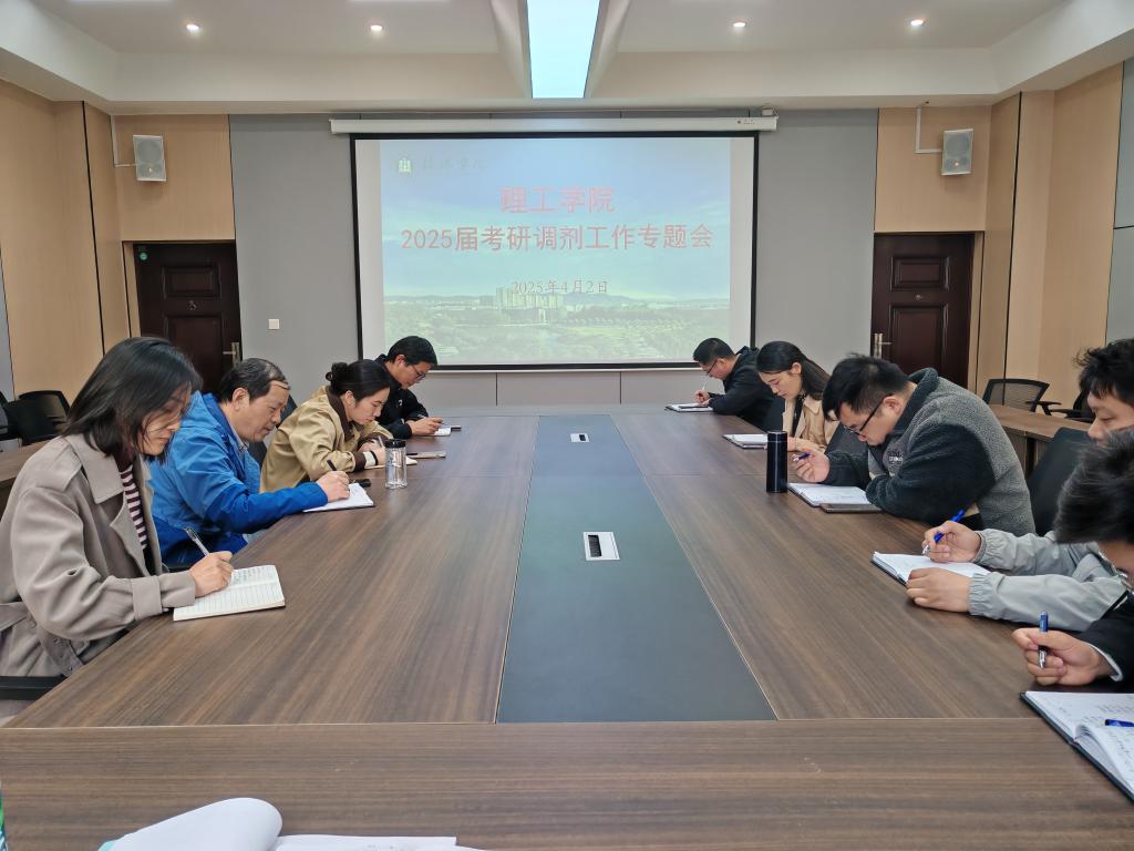 日前,我院于理工楼201会议室召开2025届考研调剂动员大会,针对考研复试调剂关键阶段进行专项部署。理工学院院长肖生发、党总支书记赵佳、教学副院长李晓严出席会议,学工秘书杨晓杰、各专业考研指导老师参加会议,会议由杨晓杰主持。
