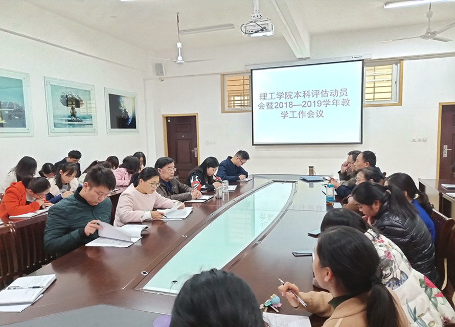 为贯彻落实学校本科合格评估大会以及王北生校长《凝心聚力谋发展 以评促建谱新篇》报告精神,11月28日下午,理工学院在理工楼201会议室召开理工学院召开本科合格评估动员会暨2018—2019学年教学工作会议,理工学院院长魏明坤、党总支副书记张红梅、肖生发教授、姚素梅教授、杜来林副教授、曹国廷副教授以及全体教职工参加了会议。张红梅主持了会议。