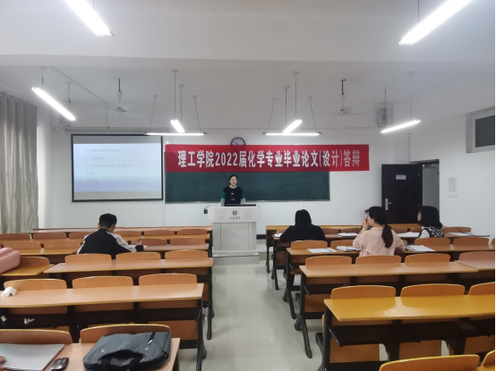 4月28日,理工学院化学教研室2022届化学本科专业毕业论文答辩工作顺利开展。本次答辩对象为2018级化学本科专业全体同学。毕业生论文答辩在实训中心417、理工楼303、理工楼601和理工楼608教室分批分组进行。参加此次论文答辩工作的有理工学院副院长李晓严副教授、教研室主任张秋平博士、姚素梅教授、鲁辉教授等化学教研室全体教师。