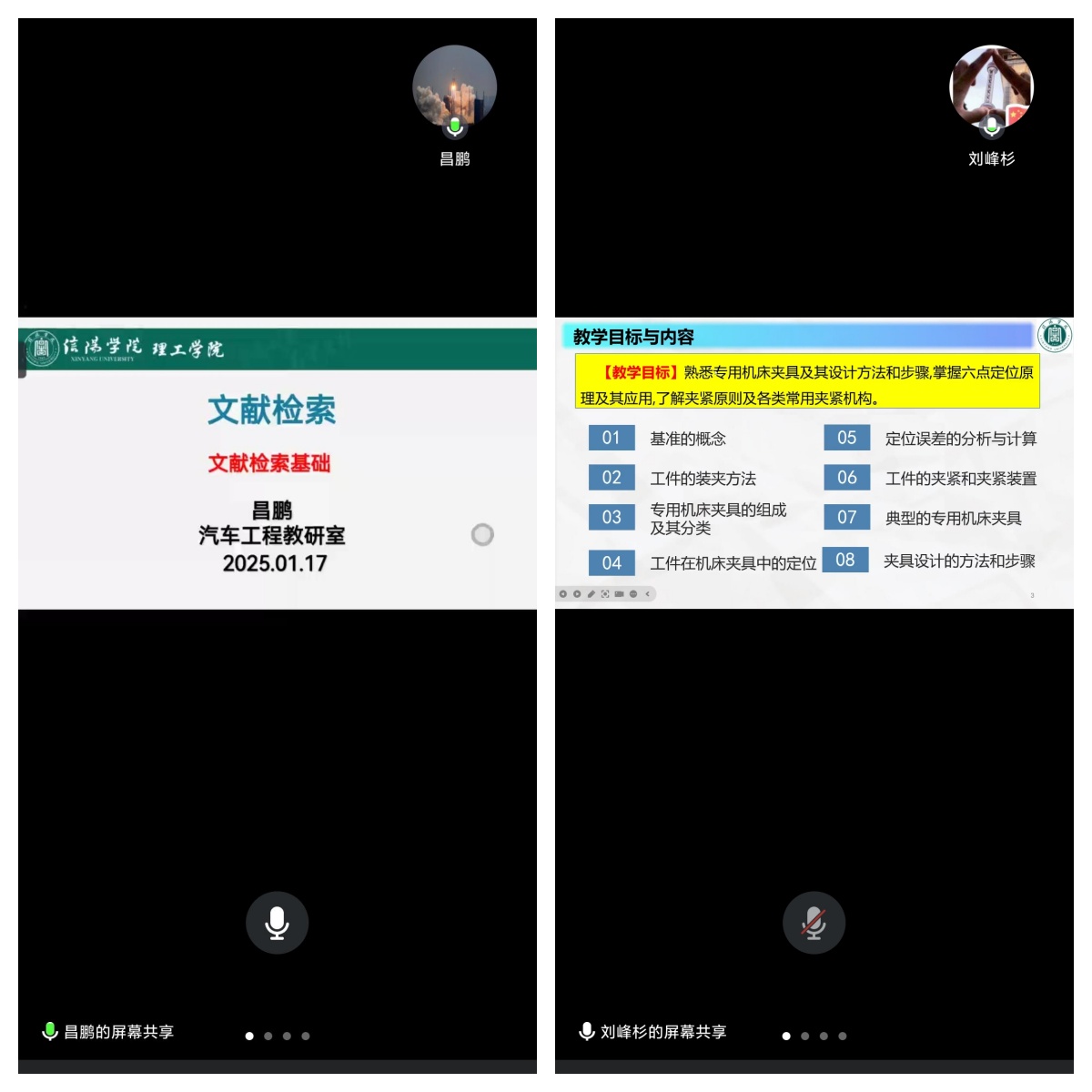 2025年1月17日,为了进一步提升教学质量,确保新进青年教师能够迅速融入教学环境并有效开展教学工作,汽车工程教研室在线上成功举办了2024年新进青年教师新学期课程在线试讲活动。本次活动旨在通过模拟真实教学场景,为新教师提供一个展示自我、交流学习的平台,同时促进教研室内部的教学经验传承与共享。