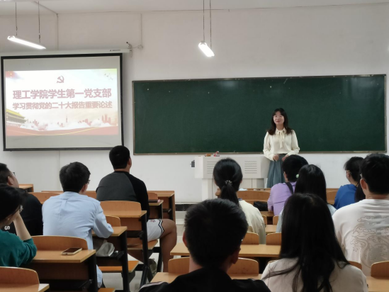 为深入学习宣传贯彻党的二十大精神,推动全体党员学深悟透党的二十大精神,推动党的二十大精神见行见效,激发广大党员爱党爱国情怀。5月9日下午,理工学院学生第一党支部副书记郑亚茹为支部党员、预备党员上了一堂题为《深入学习党的二十大报告重要论述》的党课。