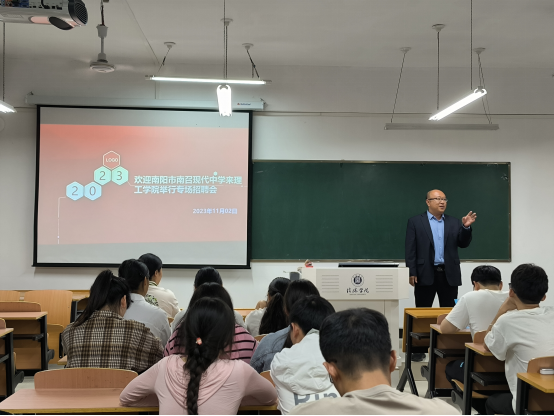 为更好的拓宽毕业生就业渠道,切实做好理工学院毕业生就业服务工作,11月2日晚,南阳市南召现代中学在我校理工楼608举行专场招聘会,学工秘书杨晓杰、毕业班辅导员杨康强及近百名毕业生参加了招聘会。