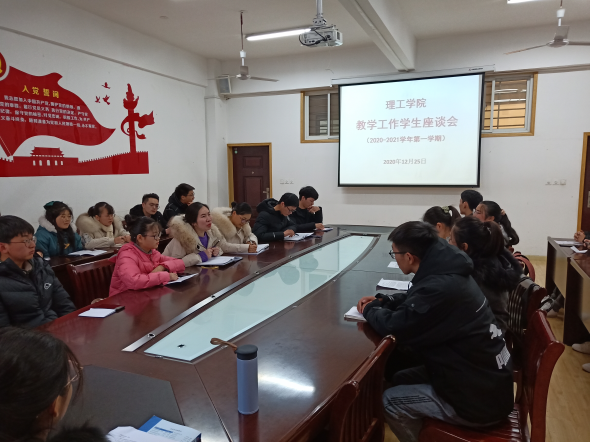 为加强师生沟通,广泛收集学生对学院教学工作的建议,进一步改进教学管理和学生服务工作,12月25日,理工学院在理工楼201会议室召开学生教学管理和服务育人工作座谈会。教学副院长李晓严、教学秘书赵丹、学工秘书杨晓杰出席会议,2018级、2019级、2020级各班学生代表参会。